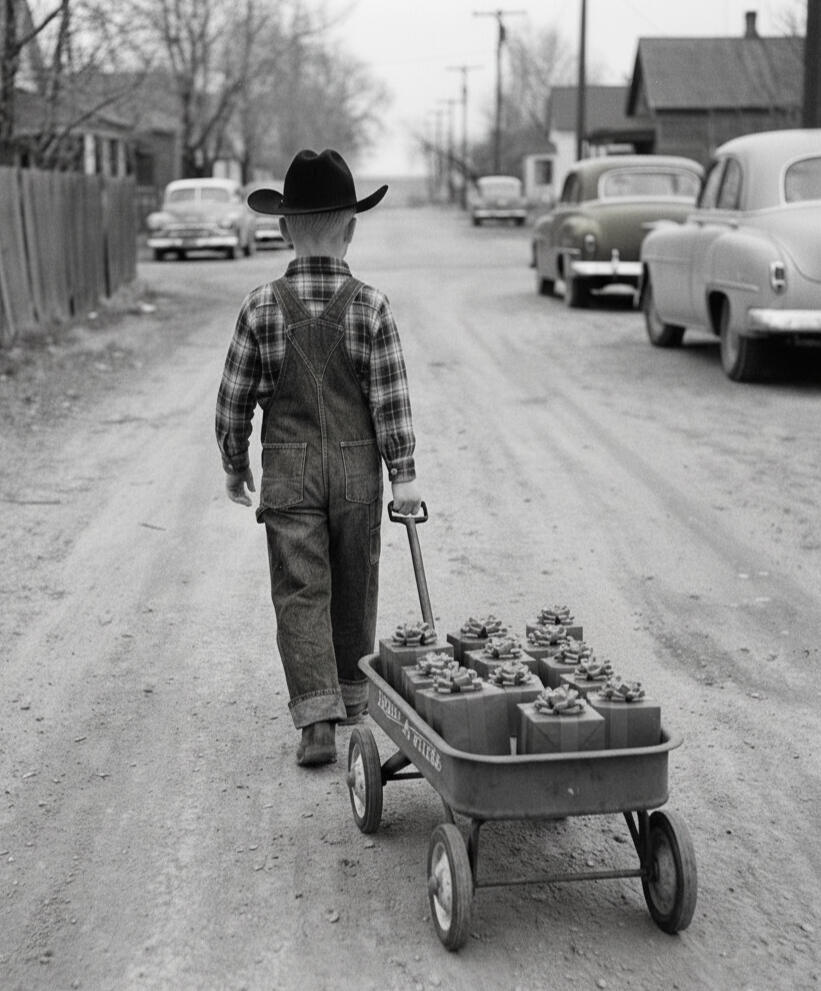 The story begins January 17, 1956, on a cold winter day in Fort Worth, Texas. A freezing rain pelted the city and soon turned into one of the worst snowstorms in the recorded history of Texas. Terrified and saddened, a mother sat in a small apartment atop an old brick building on Main Street in the Fort Worth Stockyards. The apartment was cold and dark inside, since the electricity had been turned off.She was alone with her four-year-old twins—a little boy named Giffird and a little girl, Crystal—along with their one-year-old brother, Justin. She sat the children on pillows on the kitchen floor so they could use the open oven door as a tabletop for their rice and beans. The burners on the gas stove provided a small amount of heat and just enough light to barely see around the kitchen. The mom stuffed towels in the windowsills and under the doors, holding in as much heat as possible, to keep herself and her children warm. They were financially destitute because their father, a Korean War veteran, was suffering from psychological trauma and had wandered off in a severe state of depression and deserted them.The three children and their mother, Maria, were sleeping quietly on the cold kitchen floor when a loud knock suddenly sounded on the apartment door, startling them awake. Excited, Giffird and Crystal immediately thought it was their father coming home. Maria told them to stay in the kitchen, as she wandered through the cold darkness to the front door.